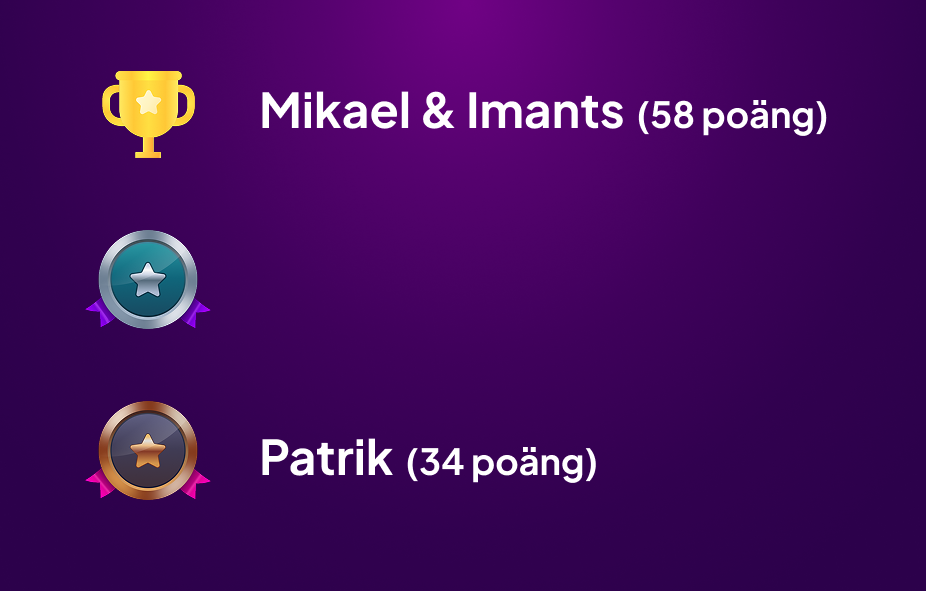 För första gången i familjekampens historia hade vi en delad förstaplats. Imants vann 5 och Mikael vann 5 kamper, Patrik vann svaga 0 kamper!